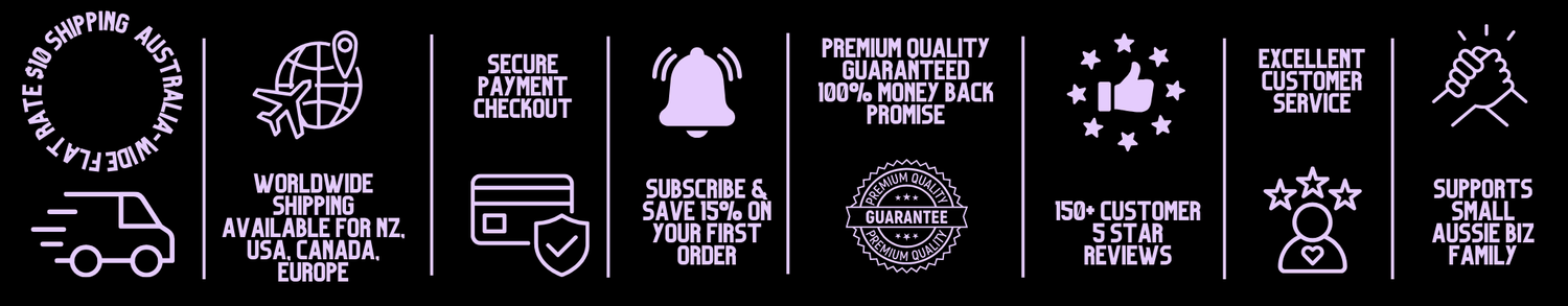We are proud to be growing our brand with over 160 ⭐⭐⭐⭐⭐ customer reviews, and combined followers of 12K plus on our socials who are loving what we do! Join our family by signing up to our website, and we will gift you 15% off your first order!